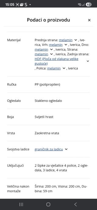 Mjere na slici.