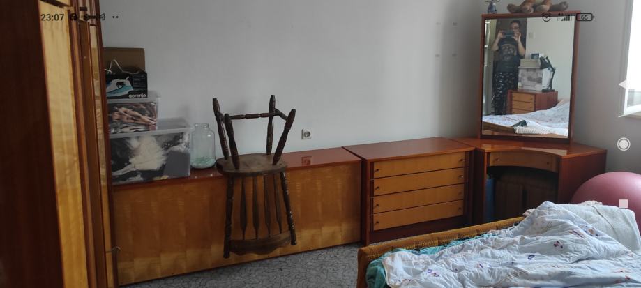 Prodajem veliki ormar,dva noćna ormarića,škrinju za posteljinu,komodu i kutak za šminkanje sa ogledalom i pripadajućim tabureom koji se pospremi ispod stolića..vintage dizajn,kao novo,bez oštećenja. Za dimenzije nazovite broj sa oglasa.