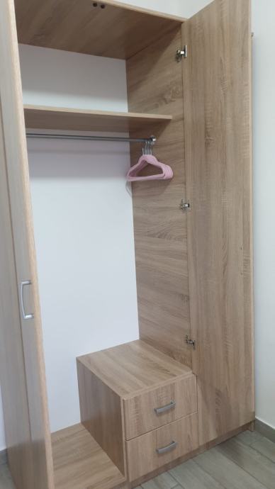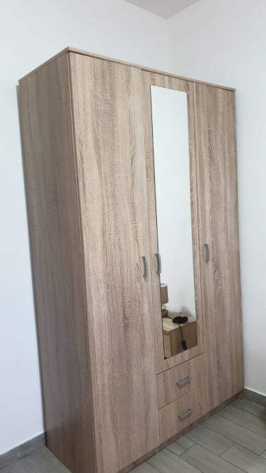 Prodaje se ormar dimenzije 120 x 205, dubine 50cm. Materijal je iverica te ima puno mjesta za robu, a uključuje i ogledalo. Ormar je kupljen nedavno, ali se prodaje zbog stilskog neslaganja s ostalim namještajem.
