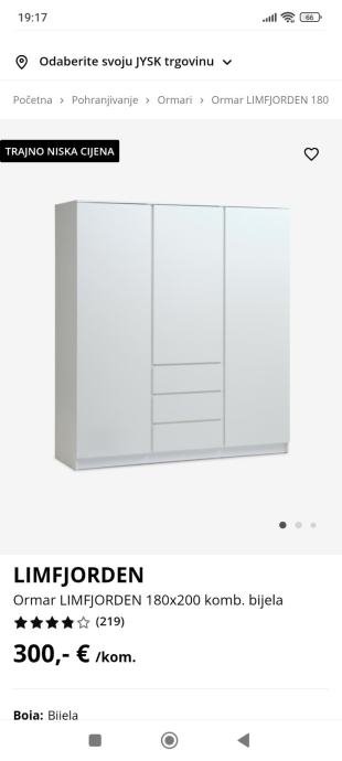 Prodajem ormar u super stanju, korišten kao dječji ormar. Vidljivo je sitno oštećenje na vratima. Također su vidljive i dimenzije i cijena koliko je plaćen.