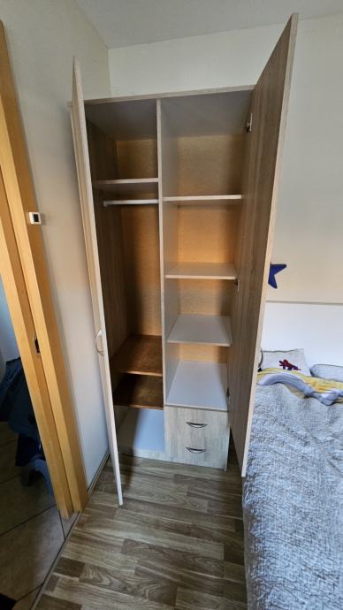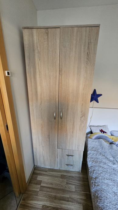 Ormar je j dobrom stanju, dvije daske smo mi sami dodali, tamnije su boje na slikama. Ormar je ratavljen i složen u kartonske kutije. Zalijepljeni su brojevi radi lakšeg sklapanja ali i bez brojeva je jako jednostavno složiti. Sve šarafe čuvam, pante i vodilice. Dostava nije moguća zbog težine ormara, isključivo osobno preuzimanje.