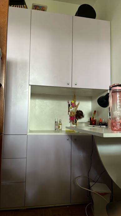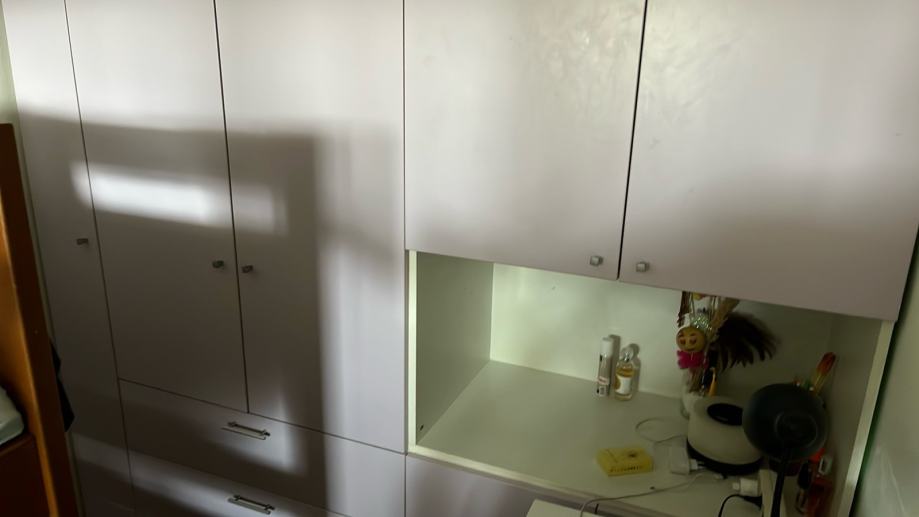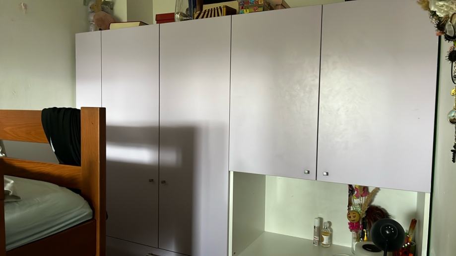 Prodajem novi ormar namijenjen spavaćoj sobi. Radi se o prostornom modelu svijetle, gotovo bijele boje s mat površinom vratiju. Ormar se sastoji od nekoliko dijelova koji zajedno čine cjelinu s gornjim kabinetima, donjim dijelom s ladicama te otvorenom niskom u sredini koja može poslužiti kao polica ili prostor za toaletni stolić. Vrata su opremljena diskretnim metalnim ručkicama. Zahvaljujući modularnom dizajnu pruža dosta prostora za odlaganje odjeće i ostalih stvari.