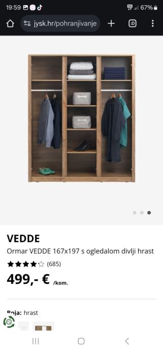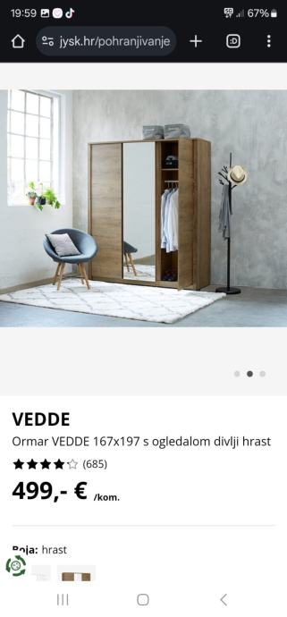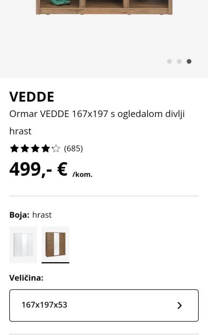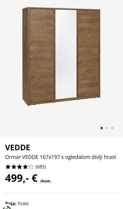 Ormar trokrilni Vedde s ogledalom,hrast167x197x53 cm, 390 eura, Zagreb