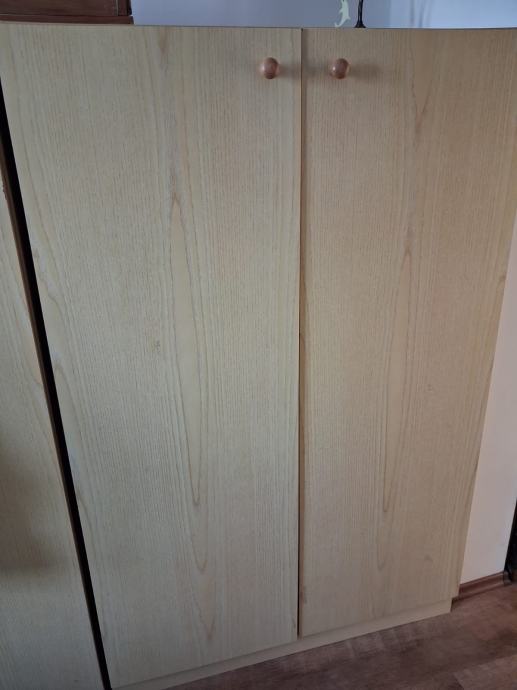 Prodajem 4 ormara s policama u svijetloj, drvo imitaciji boje. Ormar ima dvoja vrata s okruglim drvenim kvakama te nekoliko polica unutra. Svaki €15, cijena nije fiksna