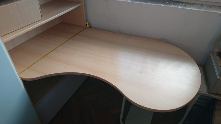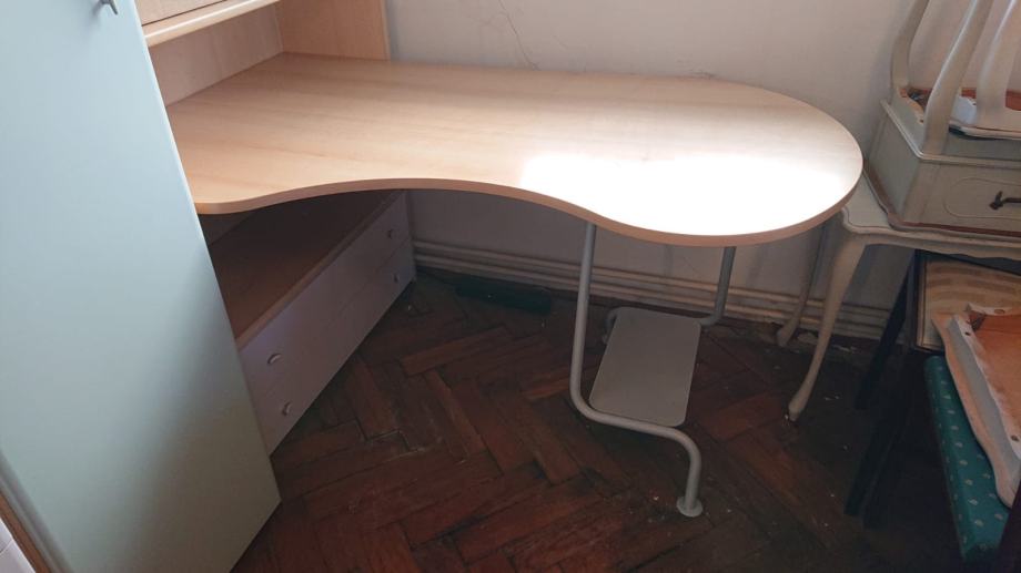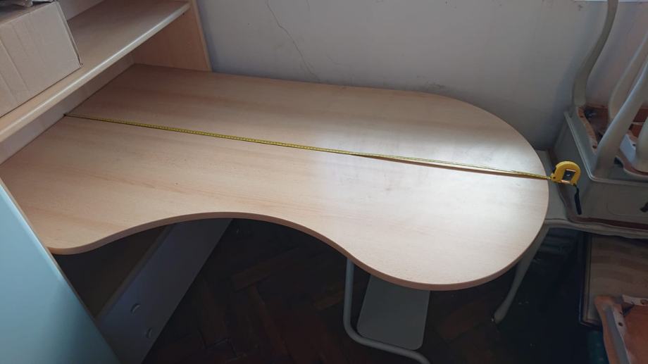 6. Stol + police i ladice - stol dubine 90cm na punom dijelu, duljina 150cm, širina polica 95cm, visina ormara 195cm, dubina polica 34cm