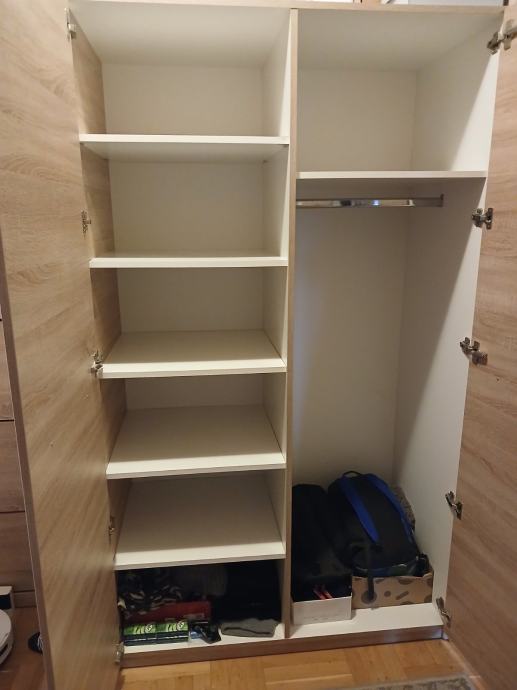 Prodajem dvokrilni ormar u vrlo dobrom stanju.Rađen je po mjeri,dimenzija(205×180×60).Ima čvrste okove,meko zatvaranje,lijevo police a desno vješalicu i policu.Cijena se može korigirati.