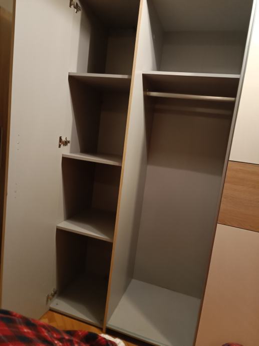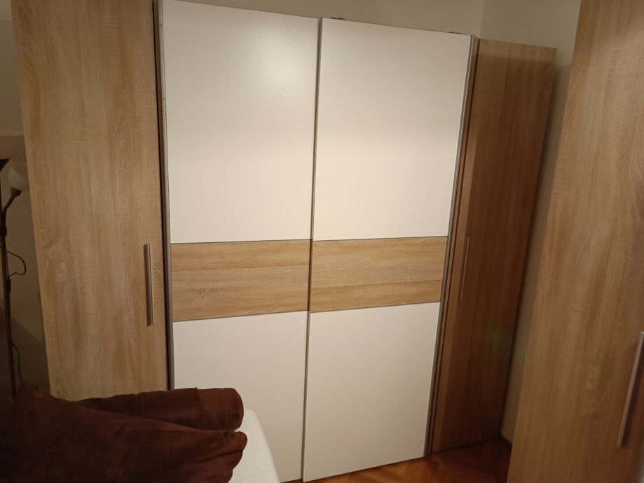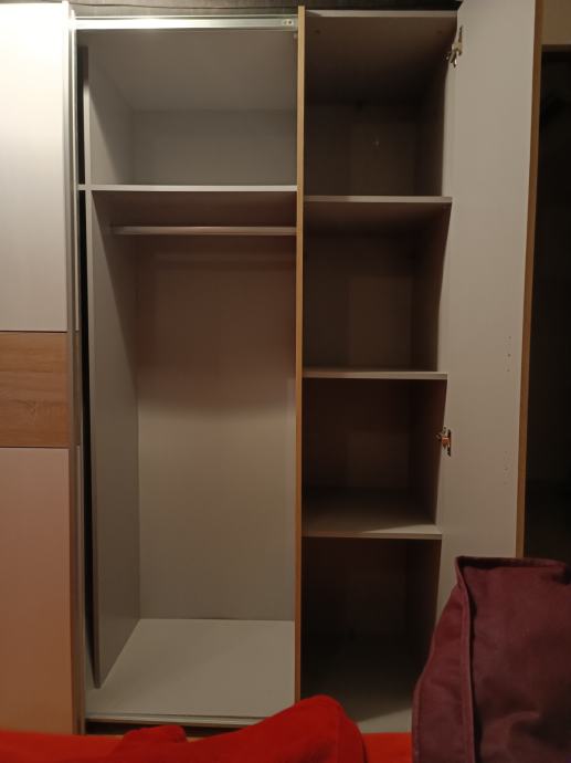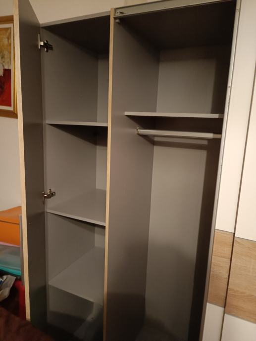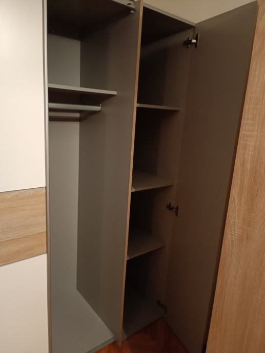 Dva garderobna ormara, kupljena u Mimi za 4.000,00 kn prije godinu dana. Malo korištena. U dobrom stanju. Sastavljao ih je stolar što je plaćeno dopunski. Svaki prodajem za 150,00 eura. Potrebno je doci po njih na Belveder.