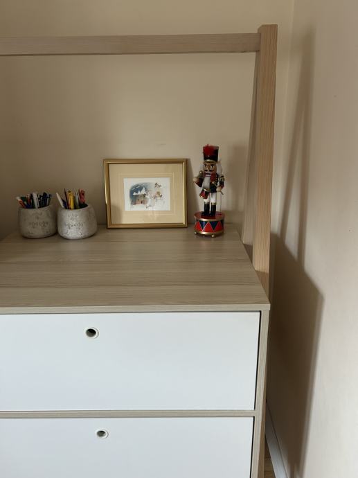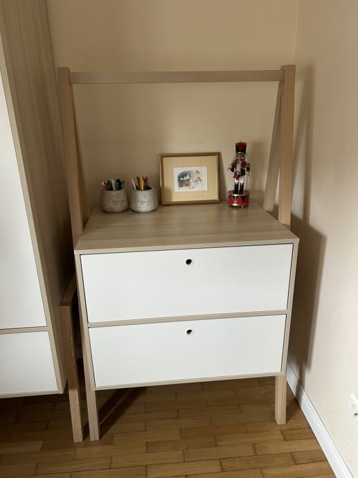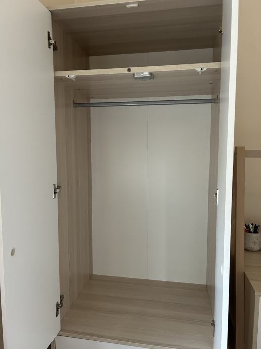 Sve kao novo. Kvalitetno, puno drvo. Ladice sporo uvlačne, rasvjeta u ormaru.