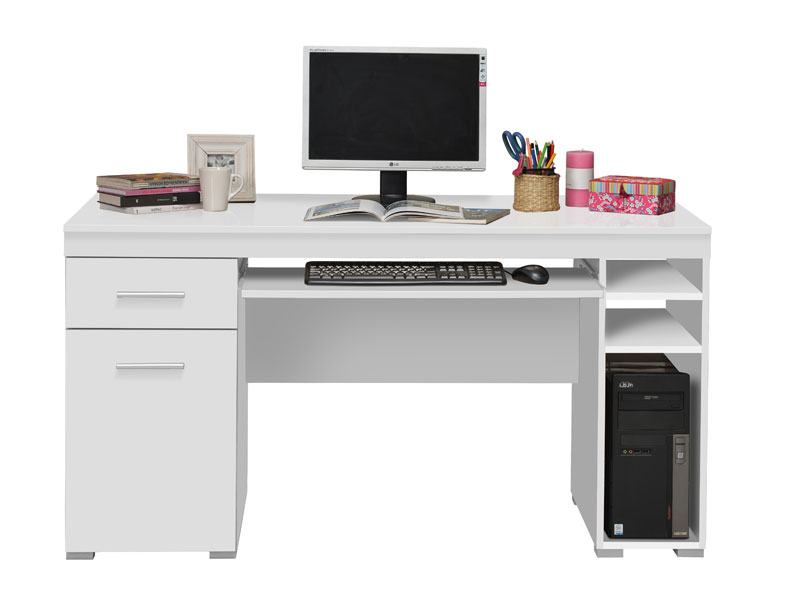 Veliki i funkcionalan pisani stol osmišljen za maksimalnu preglednost i praktičnost. Opremljen je s dvije ladice, ormarićem s vratima, otvorenim policama i posebnim prostorom za računalo ili pribor. Radna ploha nudi dovoljno mjesta za monitor, knjige i uredski materijal, a dodatna polica za tipkovnicu čini ga idealnim rješenjem za korištenje računala.