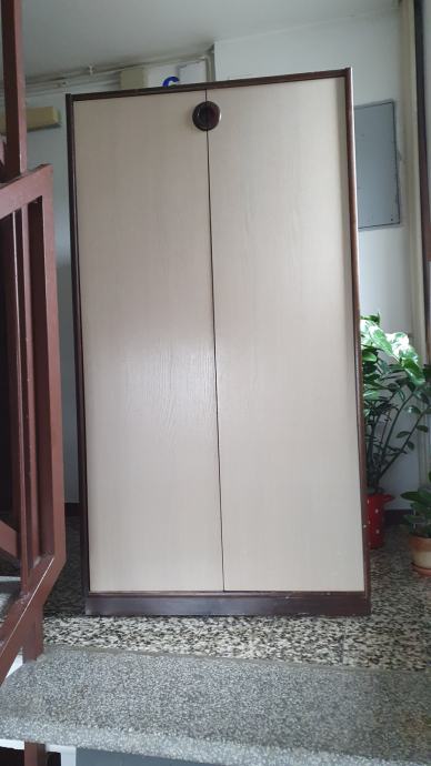Dva stojeca ormara za vjesanje odjece a gore dolazi manji ormari za odlaganje robe. Fali ruka spoj izmedu ormara.