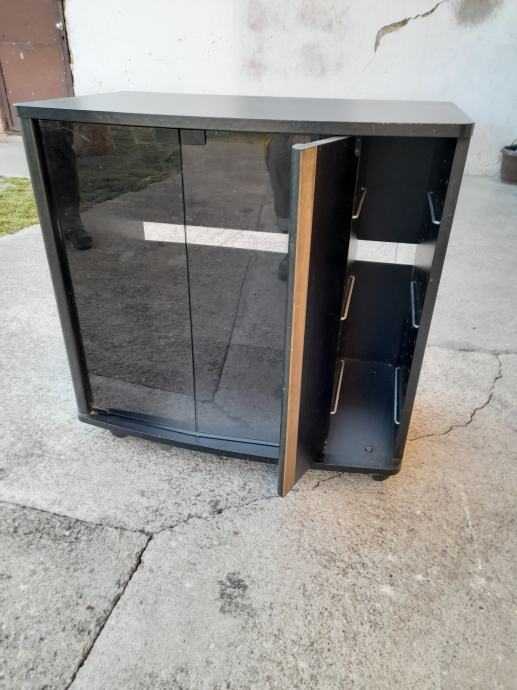 Prodajem ormarić, crni sa tamnim staklenim vratima (2 krila), D-75cm, Š-46cm i V-66cm.