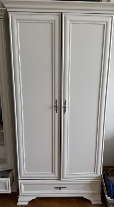 Ormar je dimenzija 90x200x60 cm. Nema police već se unutar njega nalazi šipka pa je idealan za vješanje stvari. Vjerojatno je moguće i ugraditi police. Na dnu se nalazi ladica.
