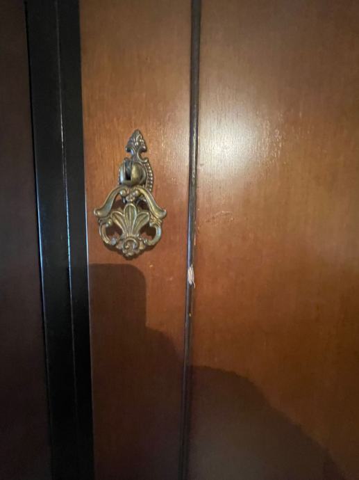 Krasi ga bogata tamna boja s ukrasnim bordurama na vratima i originalnim stilskim metalnim ručkicama.