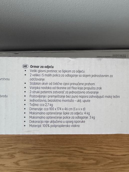Maksimalno opterecenje sipke za odjecu: 4 kg