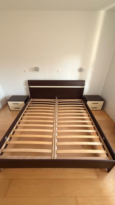 Prodajem potpuno funkcionalnu i spremnu za korištenje spavaću sobu. NAPOMENA: Spavaća soba spremna za otpremu nakon 22.1. Prodajem bračni krevet s pripadajućim podnicama, dva noćna ormarića i ormar. Ormar domanzija: 273*215*56 cm (širina, visina i dubina). Krevet dimenzija: 205*186 cm (za madrac: 200*180 cm). Noćni ormarić dimenzija: 57*38*39 cm.