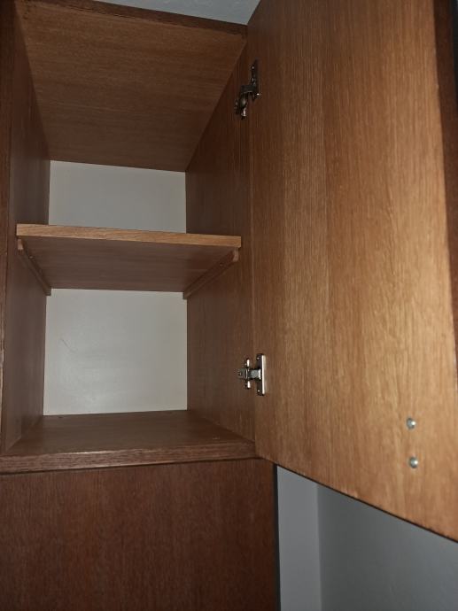 Prodajem komplet namještaja za spavaću sobu u smeđoj boji drva. Komplet uključuje bračni krevet s uzglavljem te veliki ormar s gornjim elementima koji se proteže iznad kreveta i s obje strane, čime tvori kompaktnu i praktičnu cjelinu. Ormar nudi obilnu količinu prostora za odlaganje zahvaljujući brojnim vratima i gornjim kabinetima. Krevet je masivnije izrade, što se vidi po solidnoj konstrukciji stranica.