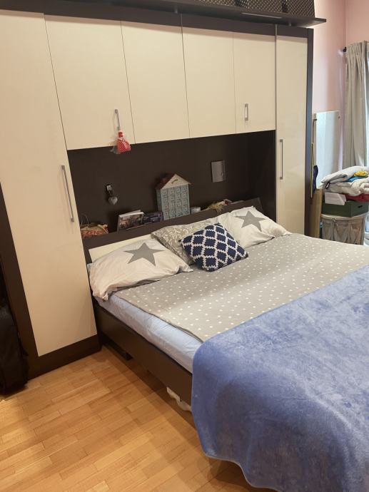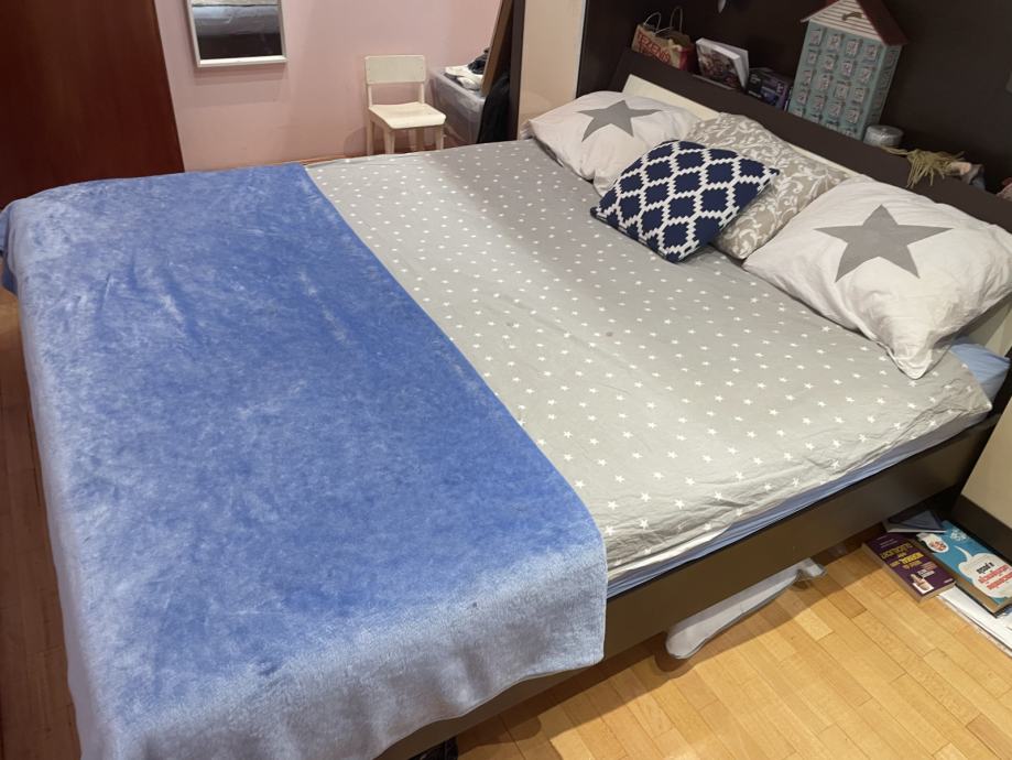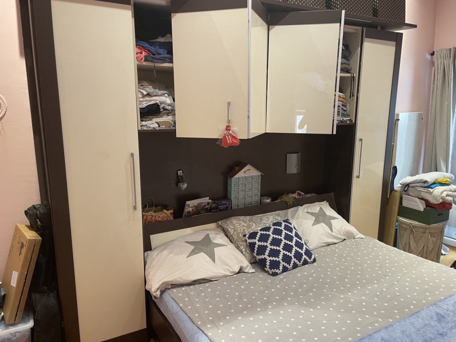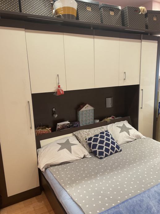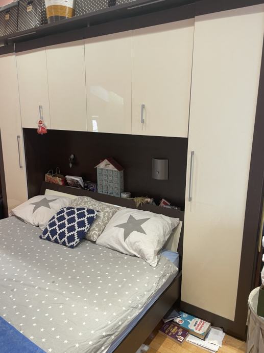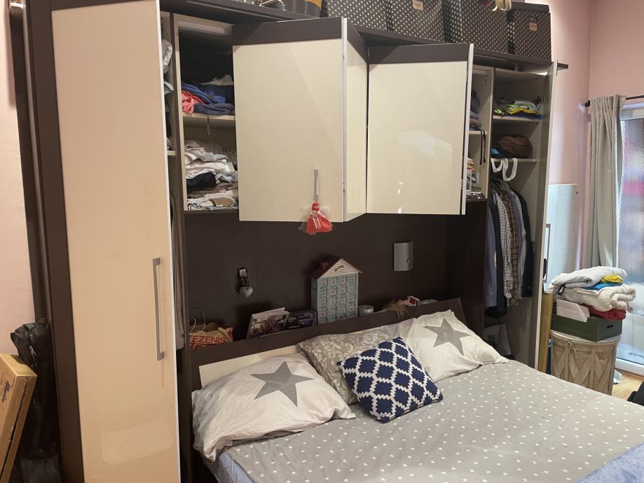 Prodajem spavaću sobu; krevet, povezani ormari s mostom.
