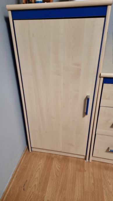 1. Trokrilnog ormara (1 vrata police, 2 vrata visece i police, ispod su 3 ladice)