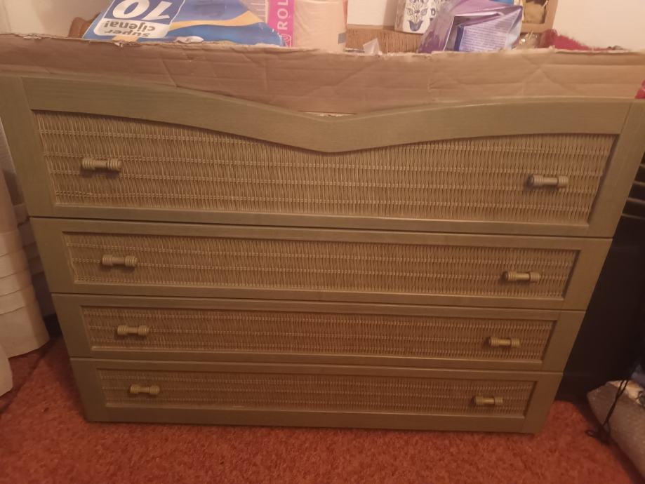 Spavaca soba komplet ormar (220x 180), krevet ( 160x200) s podnicom u jednom komadu, ladičar (100x80x50), ogledalo (90x 75) i fotelja i zavjese u istom materijalu kao fotelja