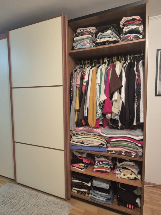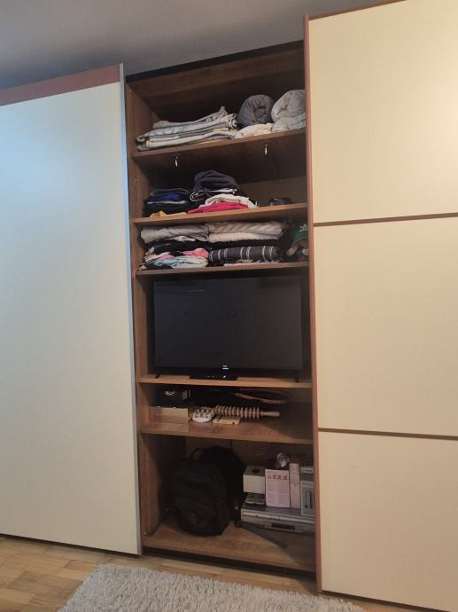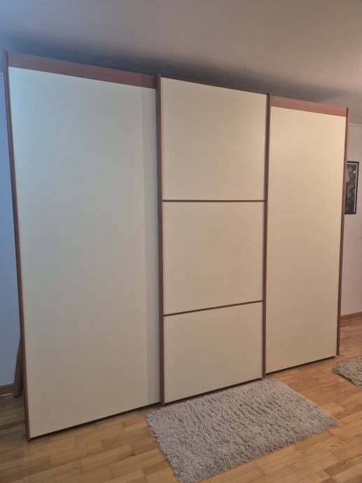 Prodajem set namještaja za spavaću sobu koji uključuje trokrilni ormar s kliznim vratima i komodu s četiri ladice. Namještaj je izvrsne kvalitete, u jako dobrom stanju, funkcionalan i pruža jako puno prostora za odlaganje. Moguće kupiti samo jedna komad namještaja.