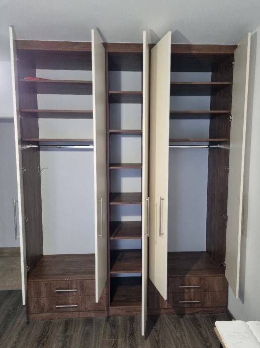 Prodajem ugradbeni ormar velicine 250x195x60, materijal iveral iz Frischeisa, rađen po mjeri od strane stolara. Rastavljen, zafoliran u strec foliji, spreman za isporuku. Korišten godinu dana.