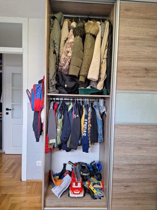 Prodajem ugradbeni ormar dimenzija 252x160x65 (VxŠxD). Lijevi dio sa dvije stange za vjesanje, desni dio sa velikim policama.