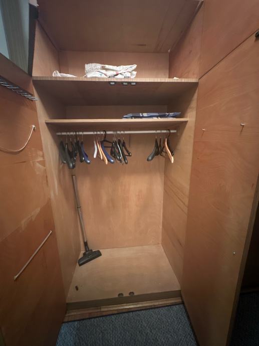 Prodajem ugradbene ormare. Ormari su postavljeni cijelom dužinom hodnika i pružaju iznimno puno prostora za pohranu. Sastoje se od većeg broja segmenata s vratima, s praktičnom organizacijom unutrašnjosti koja uključuje šipke za vješalice i police. Jedan dio ormara ima otvorenu policu, pogodnu za dodatnu opremu ili dekoraciju. Ormari su solidne izrade i funkcionalni, prikladni za spavaću sobu ili hodnik.