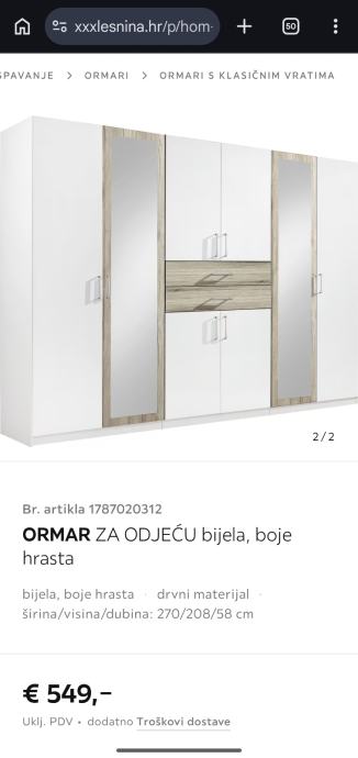 Više informacija na: https://www.xxxlesnina.hr/p/hom-in-ormar-za-odjecu-bijela-boje-hrasta-001787020312