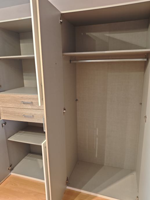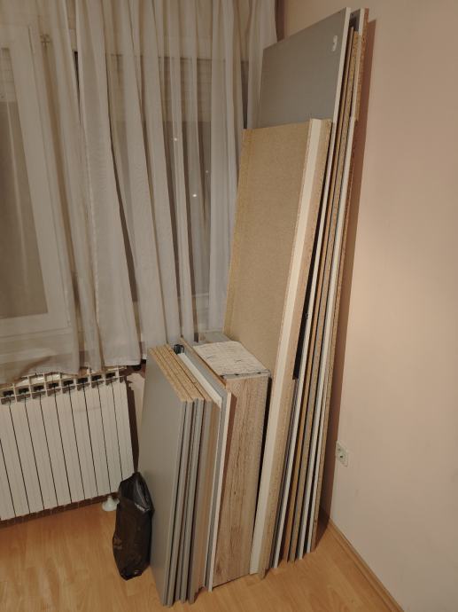 Ormar je u Folnegovićevom naselju, već rastavljen na dijelove, treba ga spustiti s drugog kata (bez lifta). Najveći komad je dug cca 208 cm.