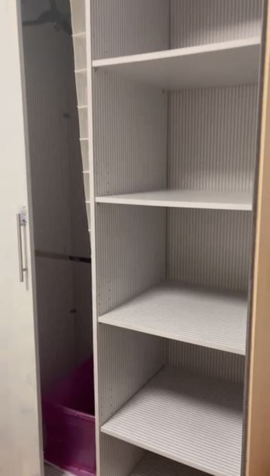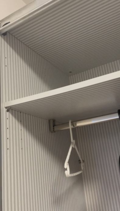 Lijeva polovica ormara kroz cijelu dužinu služi za vješanje odjeće te na gornjem dijelu ima jednu veliku policu.