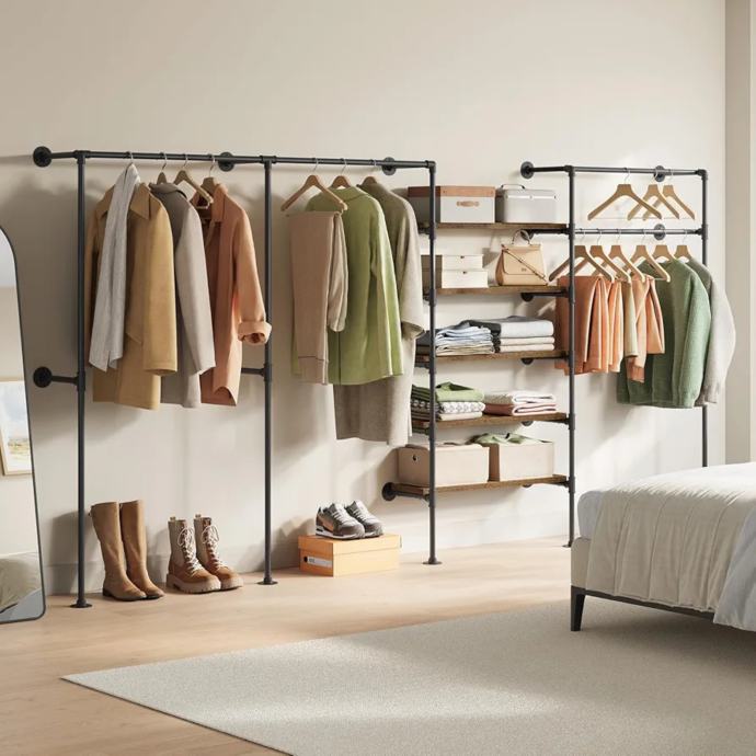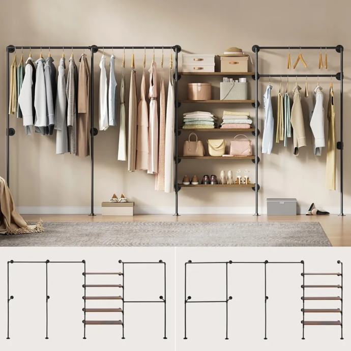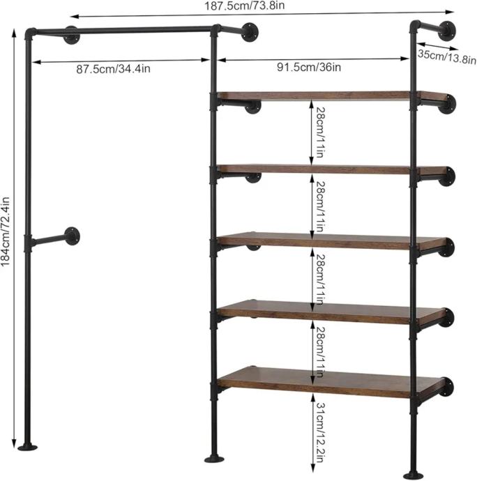 ORGANIZIRANO I OTVORENO VJEŠANJE: WOLTU zidna vješalica za odjeću ima 4 metalne šipke za vješanje koje omogućuju uredno pohranjivanje odjeće, sprječavaju gužvanje i olakšavaju svakodnevni odabir. 5 čvrstih polica pruža dovoljno prostora za pohranu odjeće, torbi, kutija za pohranu i još mnogo toga te omogućuje jednostavan pristup.