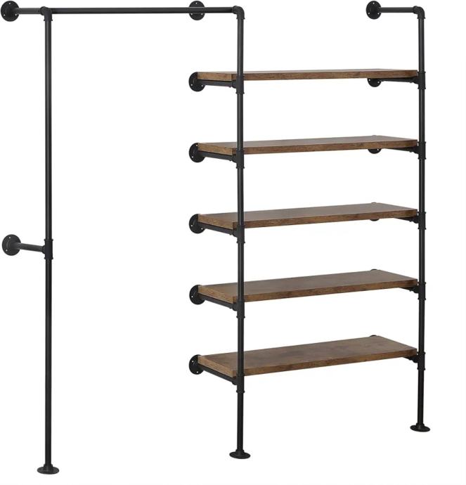 INDUSTRIJSKI VINTAGE STIL: Dizajn crne metalne cijevi i vintage smeđa drvena polica nude jednostavan, praktičan dizajn s vintage šarmom. Vješalica za odjeću dobro se uklapa u dnevne sobe, spavaće sobe, garderobe i još mnogo toga.