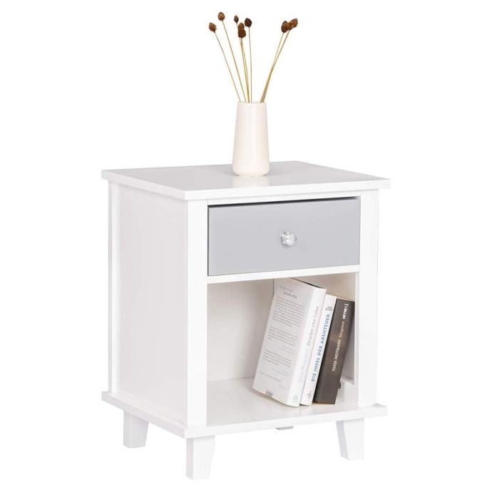 Noćni ormarić s policom nudi prostor za lampu za čitanje, telefon, okvir za slike itd.