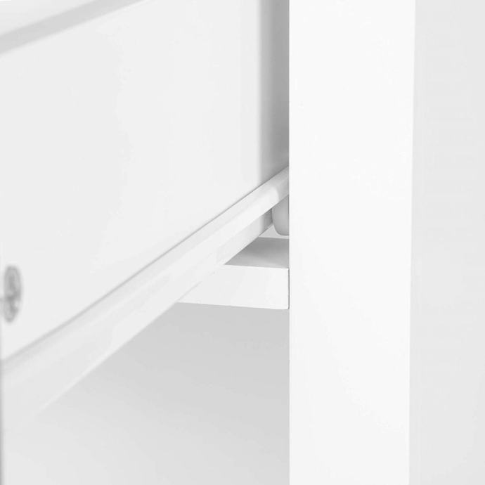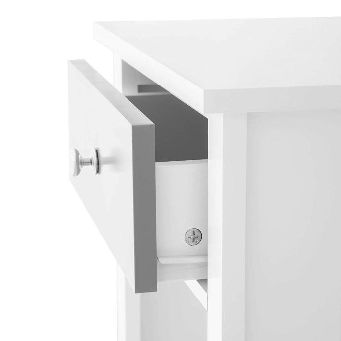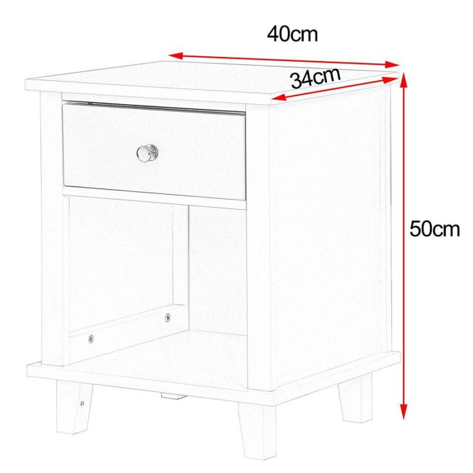 Drvena ploča je robusna laminirana, stoga je vodootporna, otporna na ogrebotine i laka za održavanje. Zahvaljujući isporučenom materijalu za montažu i uputama za montažu, ovaj se noćni ormarić jednostavno i brzo postavlja.