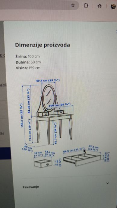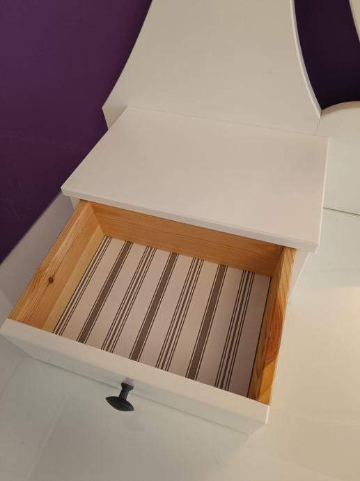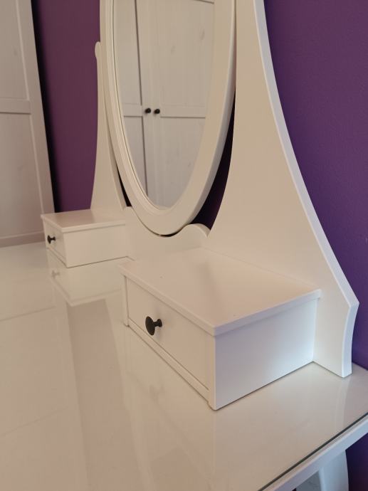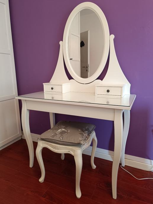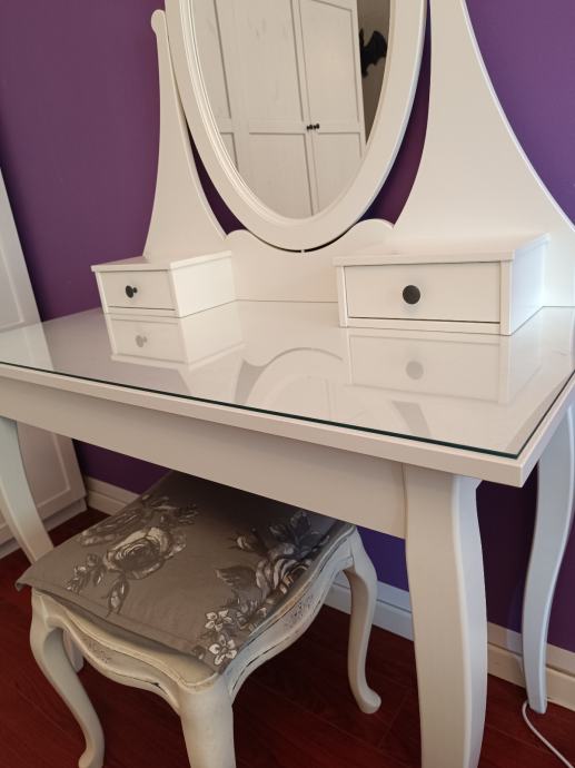 Hemnes toaletni stolić sa ogledalom. Vrlo malo je korišten pa je višak. Uz njega dolazi i ovaj retro stolac.