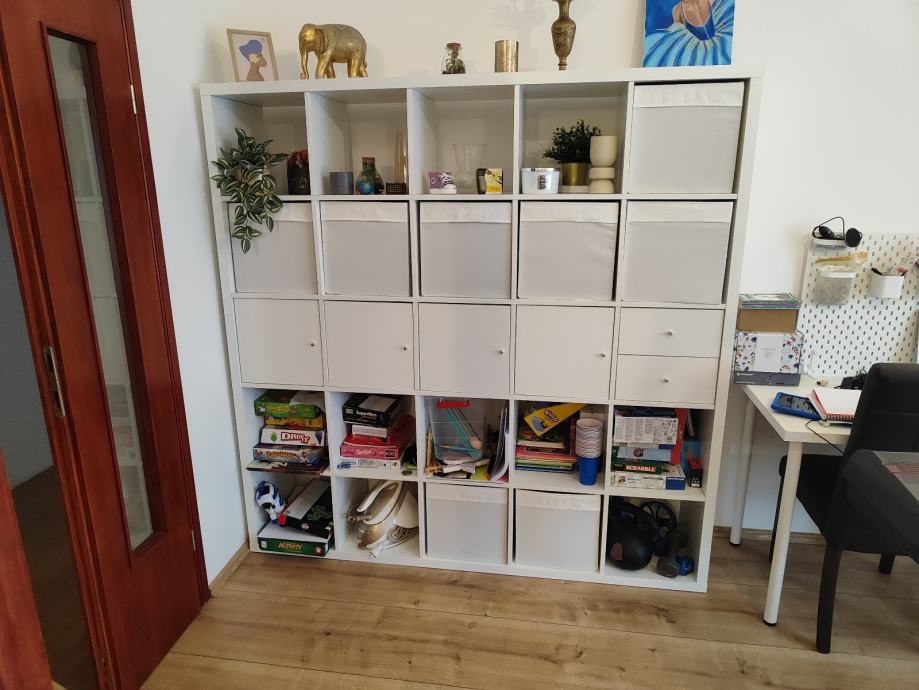 Prodajem potpuno očuvan Kallax 182x182, ali bez vrata na srednjim policama i bez kutija kao što je vidljivo na prvoj slici. Kupljen je prošle godine i kao nov je.