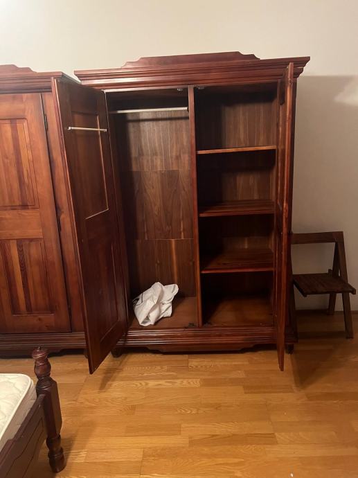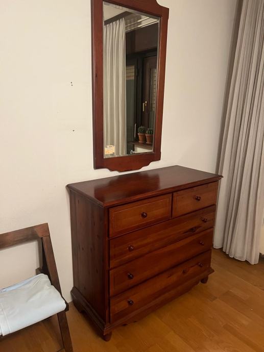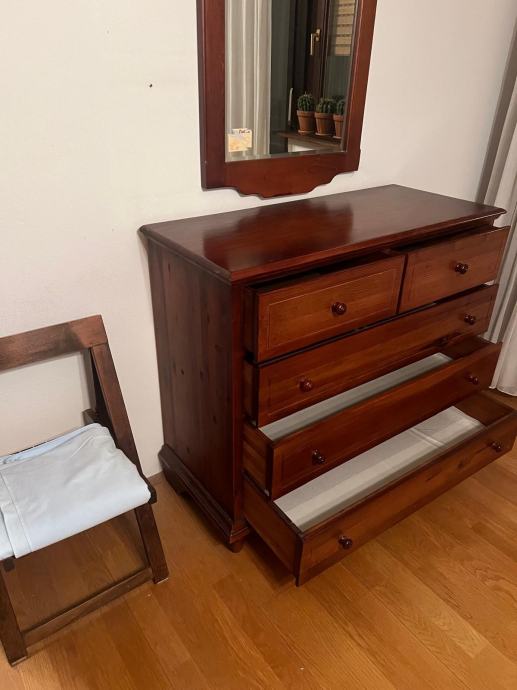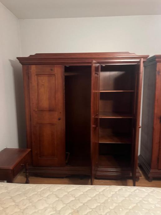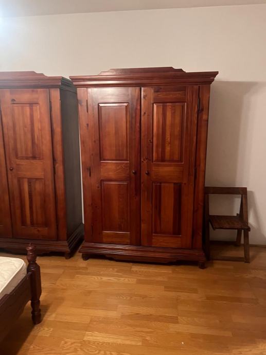 Komplet spavaća soba od punog drveta, jelovine u top stanju: krevet 160×200 sa noćnim ormarićima, Komoda ladićar sa ogledalom 110×97×47, tri krilni ormar 190×197×59, dvo krilni ormar 135×197×59