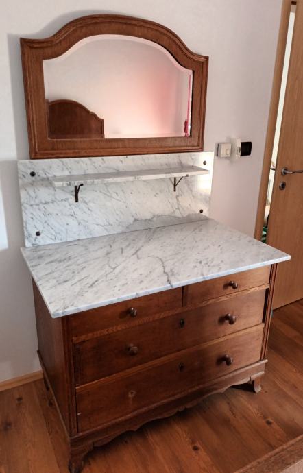 Sastoji se od bračnog kreveta 2 x 2 m , 2 x noćni ormarić s mramornom pločom, ormar, komoda s ogledalom i mramornom pločom.
