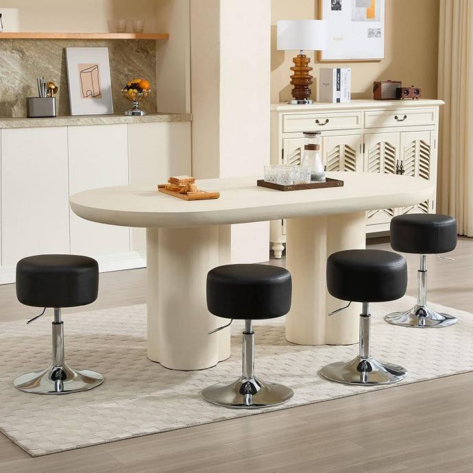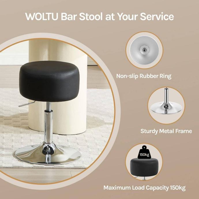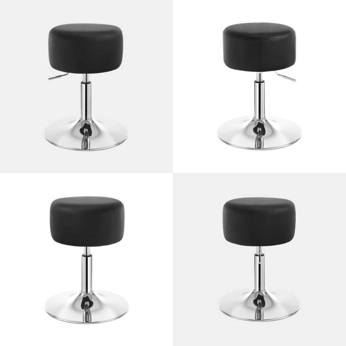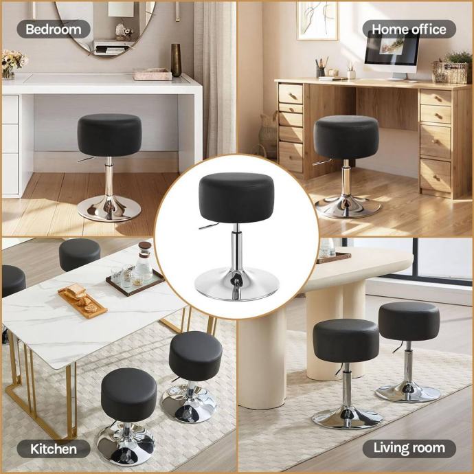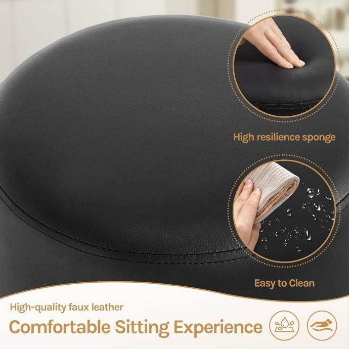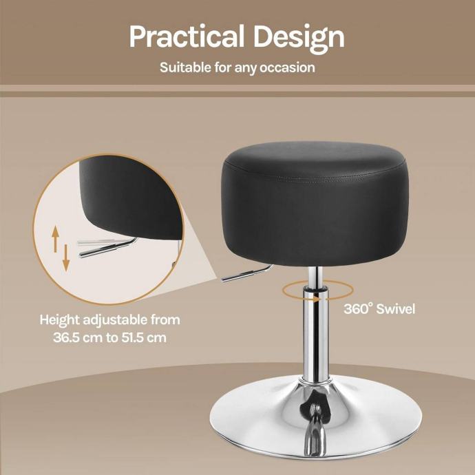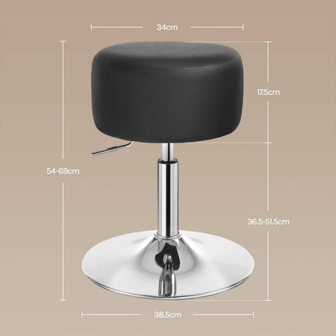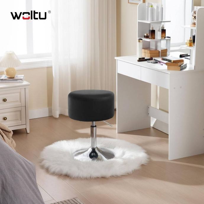 Udobna stolica za šminkanje ili manji bar nudi mekano sjedalo obloženo visokokvalitetnom spužvom i lako održivim pokrovom od umjetne kože. Plinski lift omogućuje glatko okretanje od 360° i jednostavno podešavanje visine sjedala od 52 do 67 cm prema vašim potrebama.