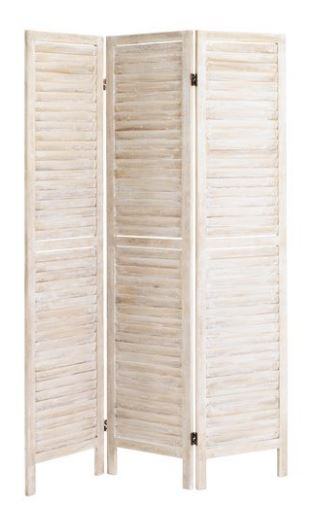 Lijepi sklopivi trokrilni paravan OURE Natur iz trgovine JYSK, od drva paulovnije, boja Natur, bez znakova korištenja.