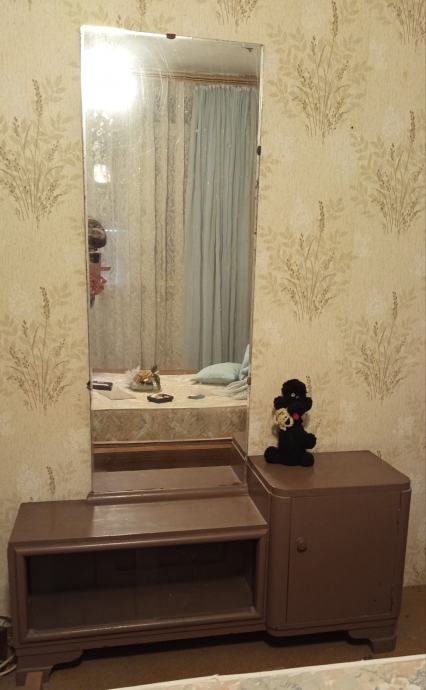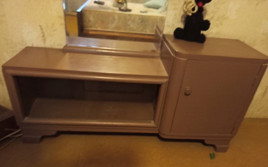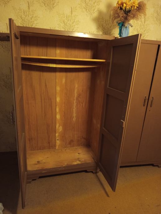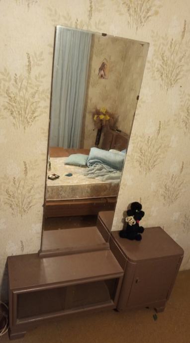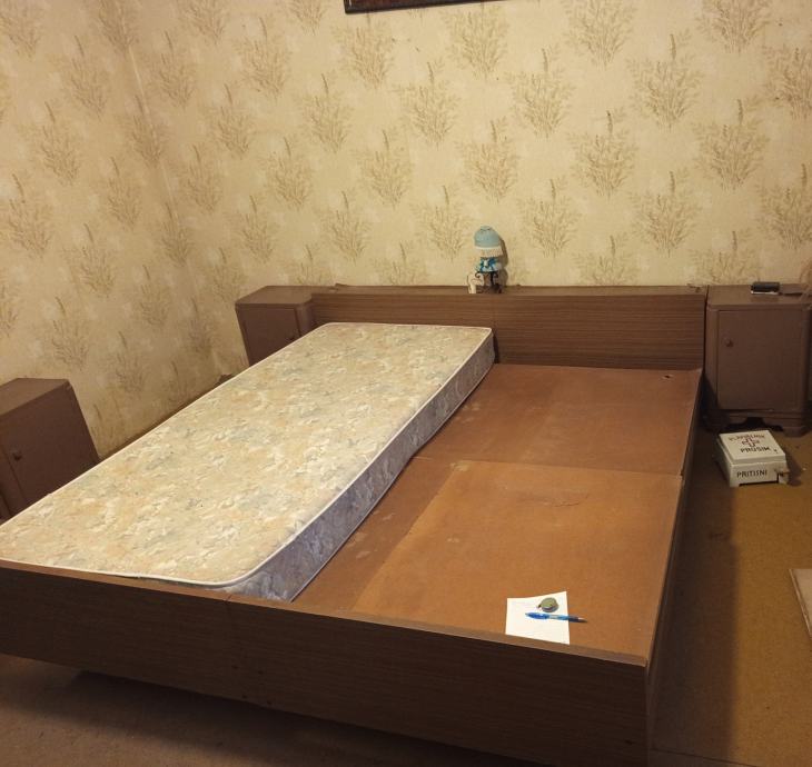 Prodajem očuvanu spavaću sobu iz 1955godine. Puno drvo, očuvana. Sastoji se od jednog ormara, svaki 170v, širine 50 cm i dužine oko 105 cm. Bračnog kreveta dužine oko 180cm,visine 60 cm, te dužine oko 180 cm. Kreveti se mogu i razdvojiti da budu posebno, nisu spojeni. Dva bočna ormarića i psihe 170visoke, dugačke 150 i široke 40 cm. Slika sa zida je poklon. Telefon 0995954107 Petrijevci