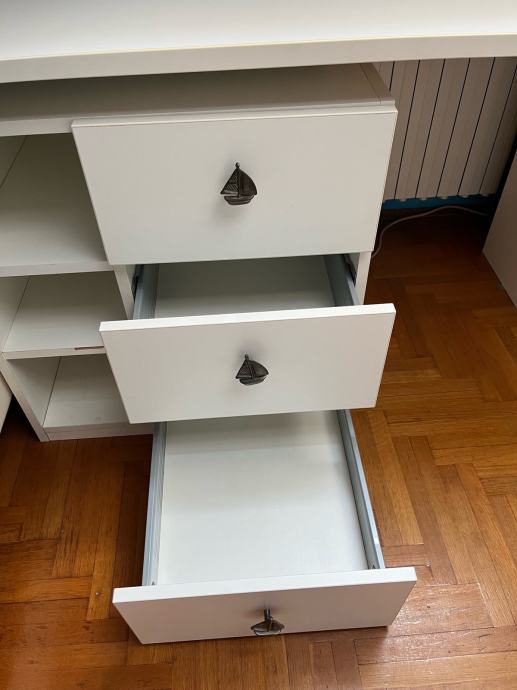 Prodajem radni stol dužine 155 cm dubine 65 cm visina 75cm stol ima 6 ladica i 3 otvorene police.