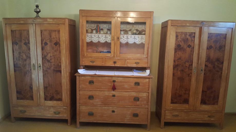 Prodajem slavonsku kompletno namještenu sobu iz 1930.godine,sadrzi 2 kreveta,2 ormara i 1 staklenjak sa ladicama