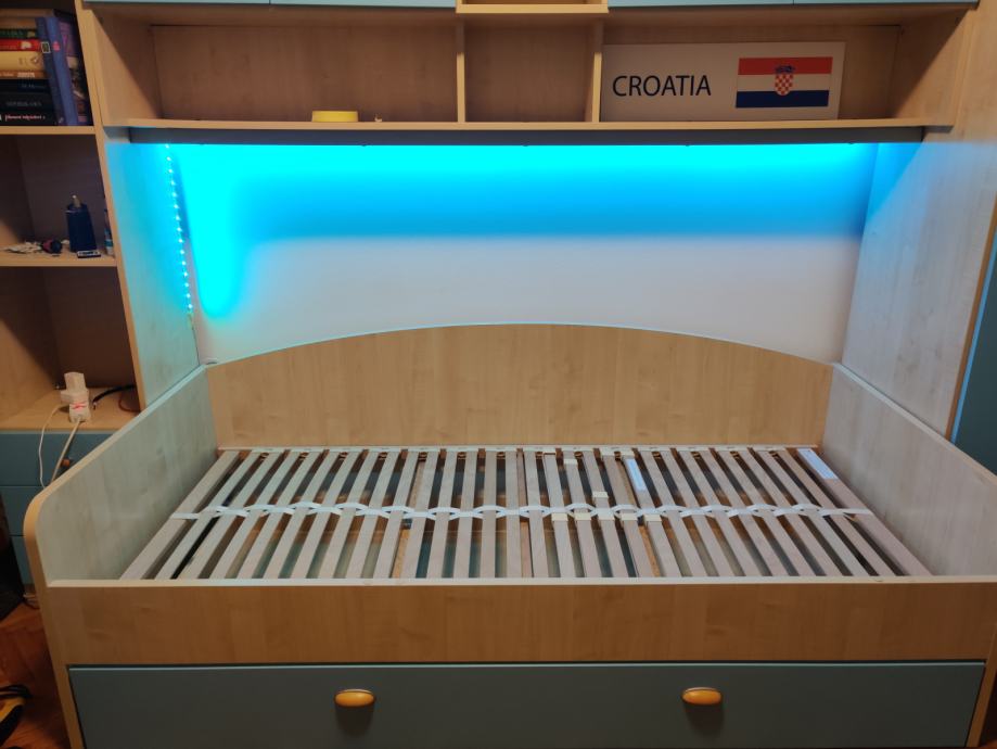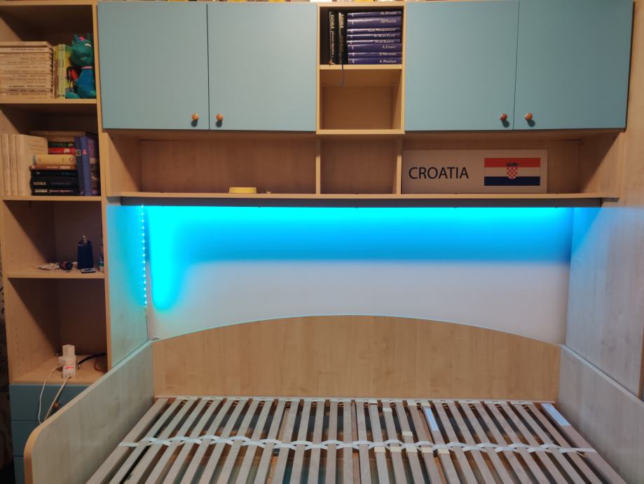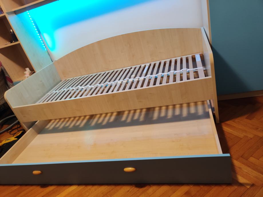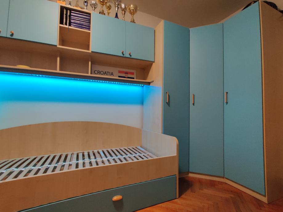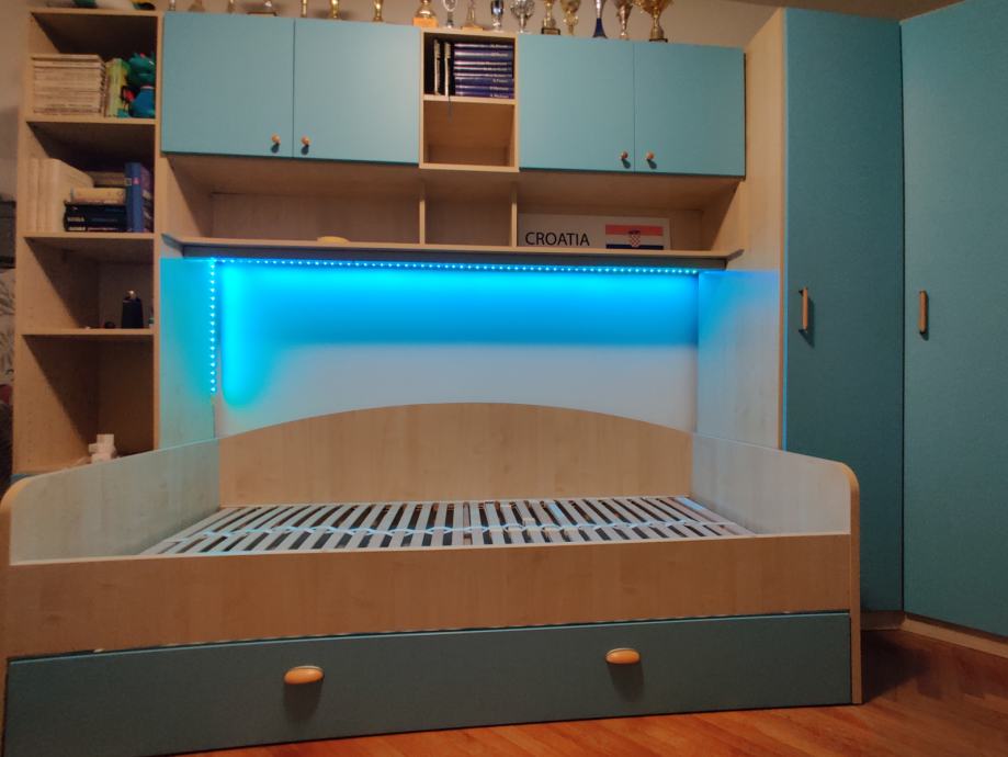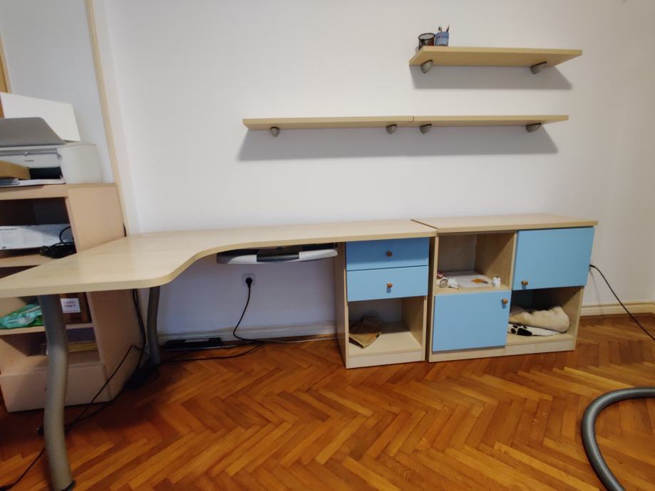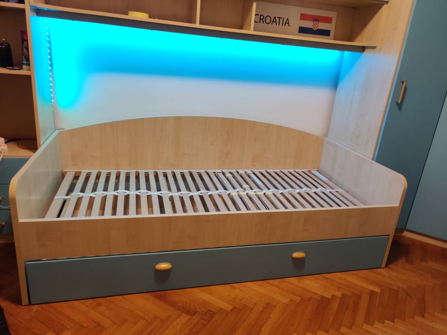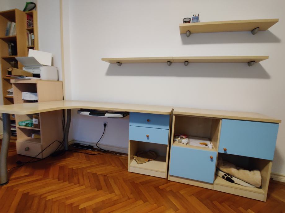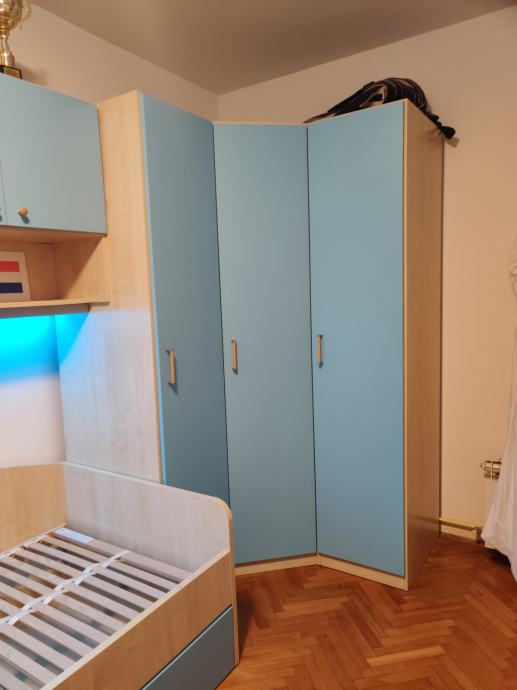 Prodajem cijelu sobu koja uključuje poličar oko kreveta, krevet, ormar s 3 vrata, radni stol + dodatak stola i 3 poličara.