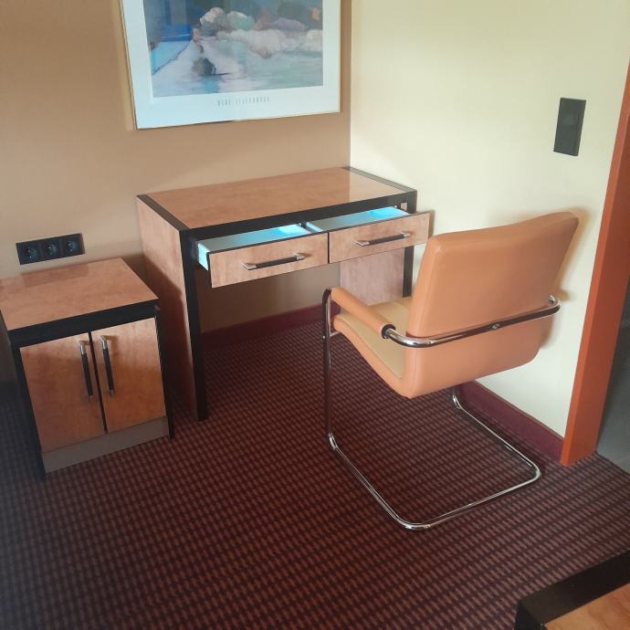 Prodajem više njemački spavači soba komplet .U odlučnom stanju .Iz hotela ,Kao novo.Nema oštečenja cijena po dogovoru.Sa dostavom ili bez.Račun može i r 1 .ili fiskalni .ili privatni.U cijeloj Hr. Kreveti 180 x 2 sa urednkm čistkm novijim madracima 90 x 2 m.Kreveti se daju i razdvojit .u pijedince .Idu lampe velika 2 manje i za čitanje 2 Zavjese sa metanom šipkom 2 slike pisači nočni ormariči stolica fotelja .I još nešta po dogovoru sve .Oko cijene i dostave.Sve na upit wotz app tel ili bilo kako.