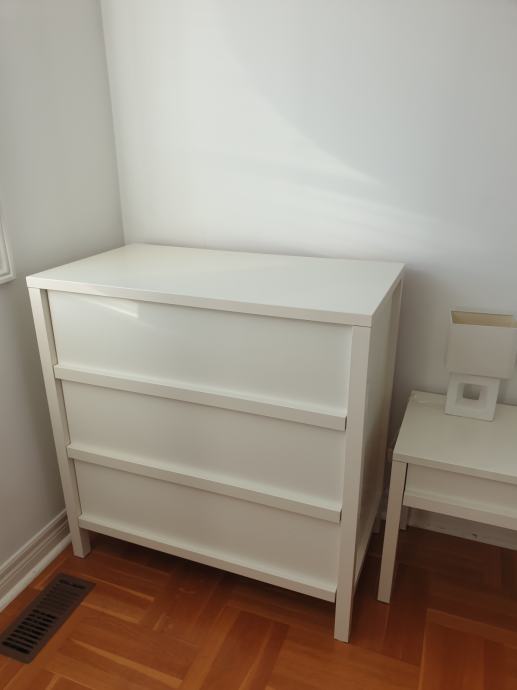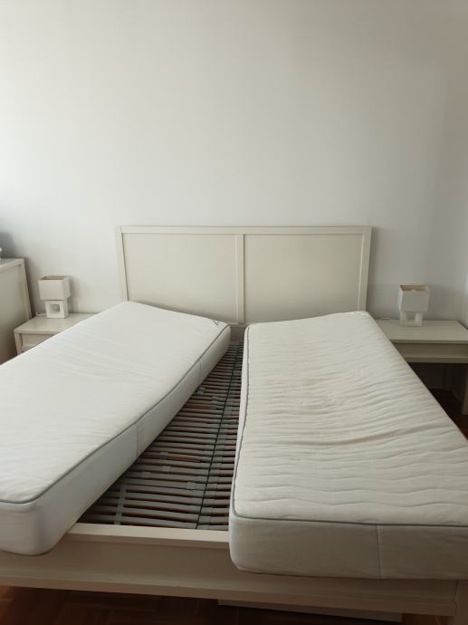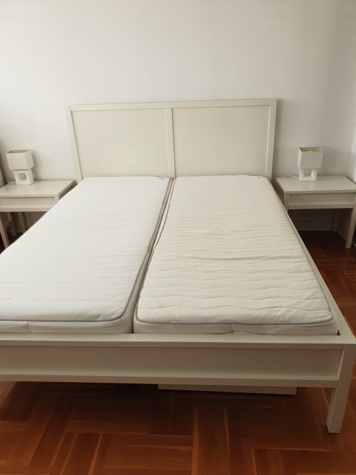 Bračni krevet 160x200, 2 podnice,2 madraca, 2 noćna ormarića, 1 manja komoda i 1 veća komoda, sve iz IKEA Graz. Prodajem .