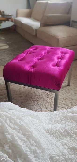 Veliki pinky tabure 80x 60 cm u pinki boji sa cromiranim elegantnim nogicama