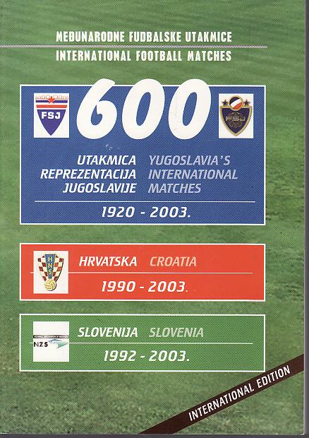 600 utakmica reprezentacija Jugoslavije HRVATSKE Slovenije / do 2003.