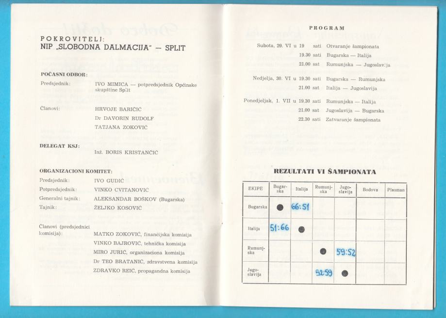 Program je odlično očuvan, na jednom mjestu je uredno upisano nekoliko rezultata (vidljivo na slici).
