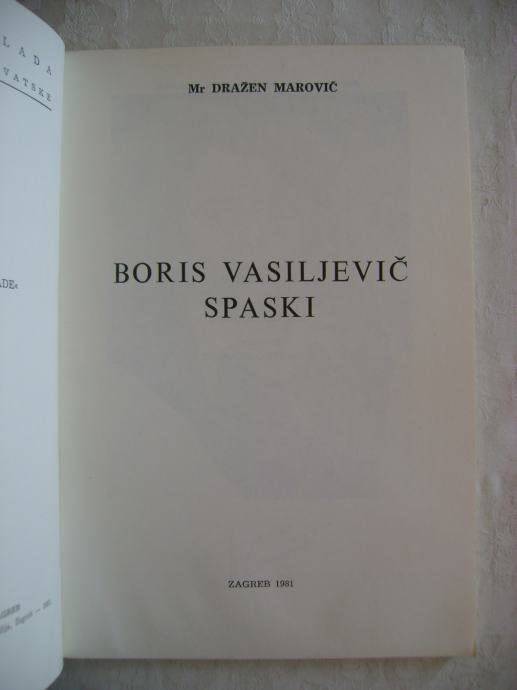 Šah - Dražen Marović - Boris Vasiljevič Spaski - edicija Veliki majstori šaha br. 28 - izdavač Šahovska naklada, Zagreb 1981. godine, 14 x 20 cm, meki uvez, 80 stranica, ilustrirano.